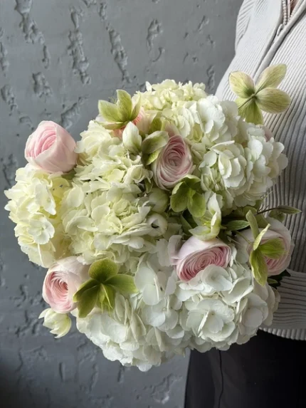 Букет невесты с гортензией и ранункулюсами