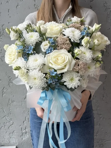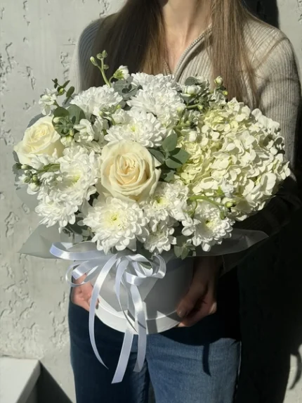 Белый, Букеты на день рождения, Букет маме на день рождения, Букет на день рождения женщине, Букет подруге на день рождения, Букет сестре на день рождения, Букеты ко Дню матери, Букеты на выпускной, Букеты на день рождения дочери, Букеты на День учителя, Букеты на торжество, Женщине, Коллегам, Композиция с растениями, Подруге, Сестре, Цветы бабушке, Цветочные композиции, Цветы в шляпной коробке, Цветы врачу, Цветы девушке, Цветы дочери, Цветы жене, Цветы на свидание, Цветы руководителю, Цветы свекрови, Цветы тёще, Цветы учительнице, Новая коллекция