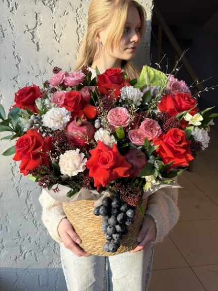 Композиция цветочная с гранатом и виноградом