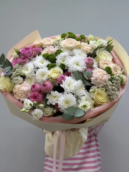 Авторские букеты, Белый, Букеты ко Дню матери, Букеты на выпускной, Букеты на торжество, Женщине, Зеленый, Коллегам, Любимой, Маме, Розовый, Сборные букеты, Цветы бабушке, Цветы врачу, Цветы девушке, Цветы дочери, Цветы жене, Цветы руководителю, Цветы свекрови, Цветы учительнице, Новая коллекция
