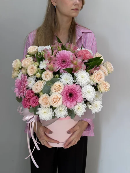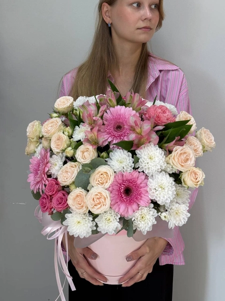 Эта очаровательная композиция, выполнена в мягких розовых и кремовых тонах, соединяет в себе нежность роз и гербер с воздушностью белых хризантем и утончённостью альстромерий. Идеально сбалансированный и изысканный, он словно лёгкий бриз оживит любое пространство, подарив чувство умиротворения и романтического настроения. Прекрасный выбор для создания атмосферы праздника и романтического вечера. Мы свяжемся с вами в течении 30 минут после оформления заявки. Если заказ необходимо выполнить срочно, перезвоните нам по телефону +79774286477.