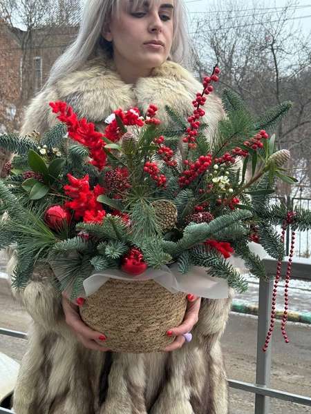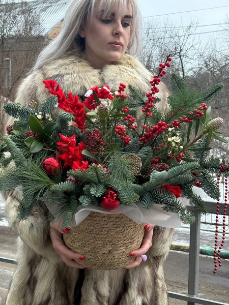 Новогодняя композиция, выполненная из веток датской ели Нобилис. При правильном уходе ель порадует 3-4 недели. Мы свяжемся с вами в течении 30 минут после оформления заявки. Если заказ необходимо выполнить срочно, перезвоните нам по телефону +79774286477.
