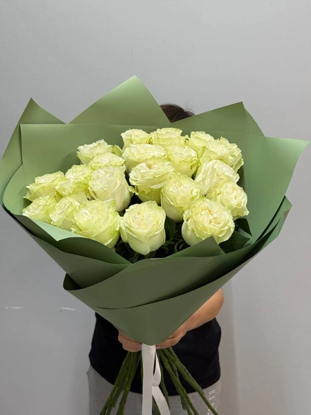 Букет состоит из великолепных белых роз, завернутых в элегантную зеленую упаковку, подчеркивающую свежесть и утонченность цветов. Эти розы олицетворяют чистоту, искренность и нежность чувств, делая букет идеальным подарком для особого случая или просто в знак внимания. Букет порадует своим изяществом и станет прекрасным украшением любого интерьера. Мы свяжемся с вами в течении 30 минут после оформления заявки. Если заказ необходимо выполнить срочно, перезвоните нам по телефону +79774286477.