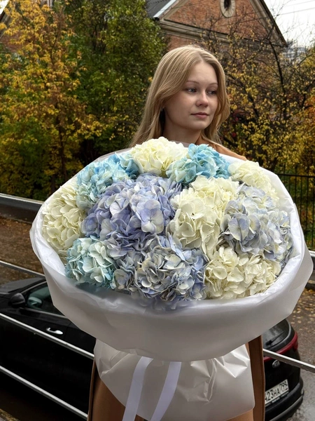 Этот элегантный букет, как нежные облака из цветов. В букете собраны гортензии пастельных оттенков — белого и различного спектра синего, что создаёт атмосферу лёгкости и воздушности. Этот букет станет идеальным подарком для того, чтобы передать тепло своих чувств и добавить нотку очарования в любой день. Мы свяжемся с вами в течении 30 минут после оформления заявки. Если заказ необходимо выполнить срочно, перезвоните нам по телефону +79774286477.
