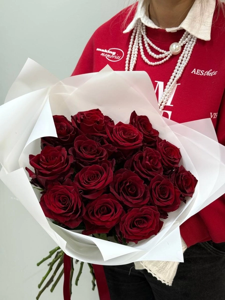 Состав букета: одноголовая роза (15 шт.) и упаковка.
