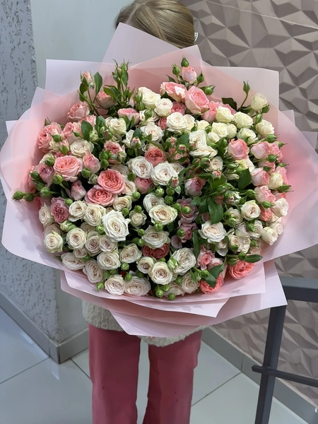 Состав букета: кустовая роза (35 шт.), упаковка (1 шт.)