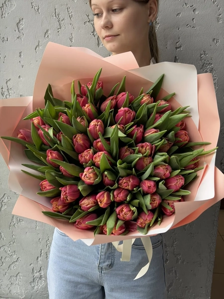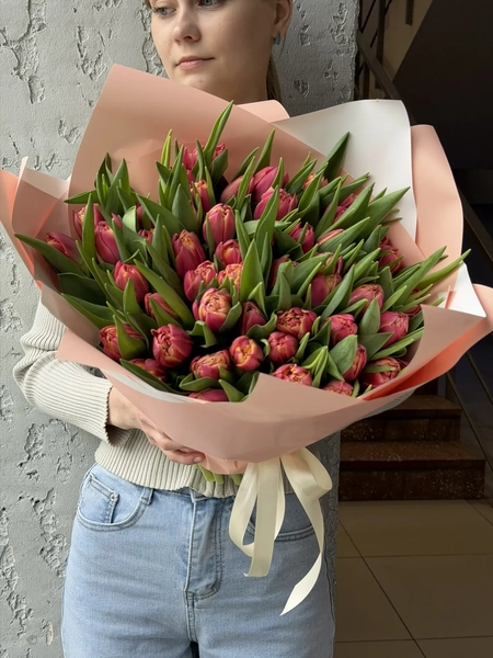 Состав букета: тюльпан (51 шт.), упаковка (1 шт.)