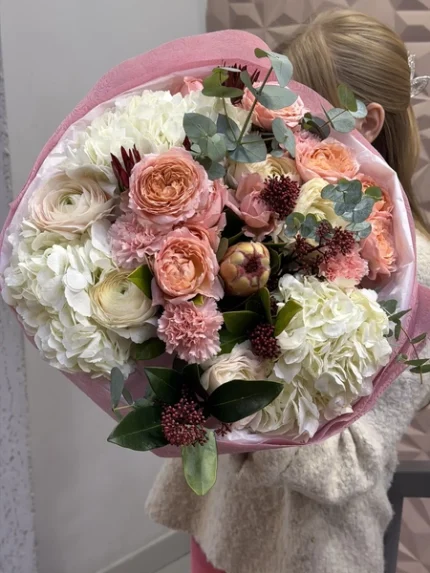 Авторские букеты, Белый, Бизнес-букеты, Букеты на день рождения, Букет подруге на день рождения, Букет с гвоздиками, Букет с гортензиями, Букет с хамелациумом, Букет с эвкалиптом, Букет сестре на день рождения, Букеты ко Дню матери, Букеты на 1 сентября, Букеты на выпускной, Букеты на годовщину, Букеты на День учителя, Букеты на Татьянин день, Букеты на торжество, Женщине, Коллегам, Кремовый, Маме, Подруге, Розовый, Сестре, Цветы на 14 февраля, Цветы на новоселье, Цветы на Пасху